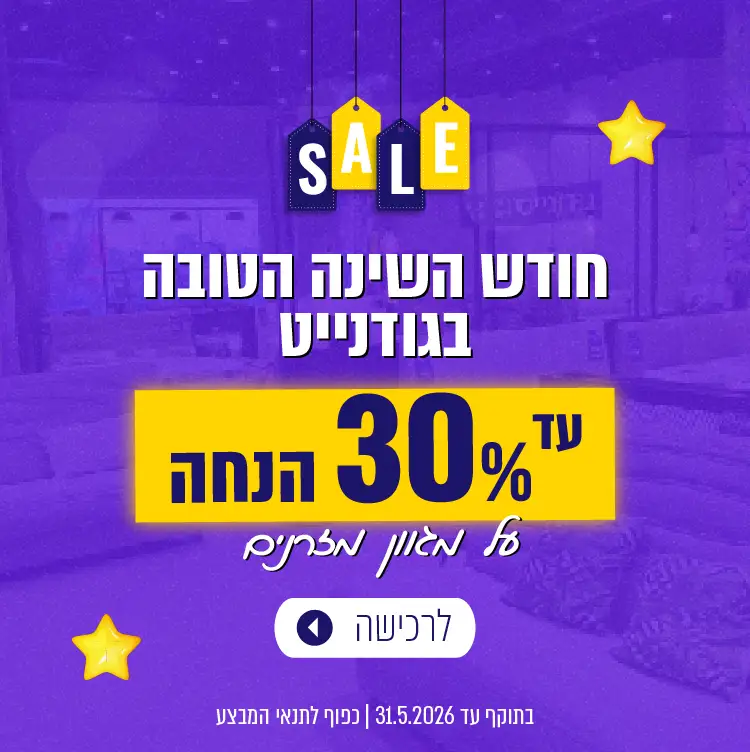 רשת גוד נייט הינה אחת מרשתות מוצרי השינה המובילות בישראל. אצלנו תמצאו הרבה יותר ממזרנים, ספות וכורסאות, אנו מציעים לכם שינה ערבה וטובה, במחירים מצוינים. הנוסחה של גוד נייט לשינה טובה מכילה בתוכה מגוון רב של מותגים מובילים, מערך מומחים אדיבים וכל זאת עם המון מבצעים שווים לכל כיס. כל אלה יסייעו לכם למצוא את המוצר הטוב והמתאים ביותר עבורכם, במחירים האטרקטיביים ביותר. כשאתם מבצעים רכישה אצלנו אתם יכולים לישון רגועים בלילה בנוחות, ברגיעה ובידיעה שביצעתם עסקה טובה ומשתלמת.